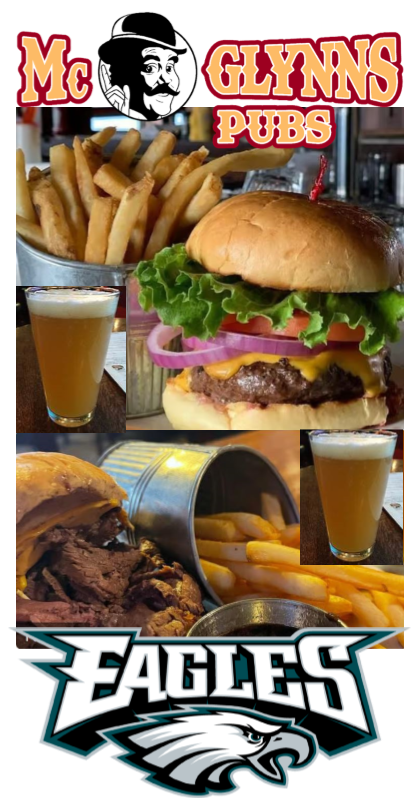 Put on your Eagles green and come to McGlynns Pike Creek for an Eagles Watch Party with WSTW’s Aaron Price where you can cheer on the Birds, enjoy awesome food and drinks and register to win a pair of Eagles vs Commanders tickets to the 1/4/26 game at Lincoln Financial Field! E-A-G-L-E-S EAGLES!!!!!